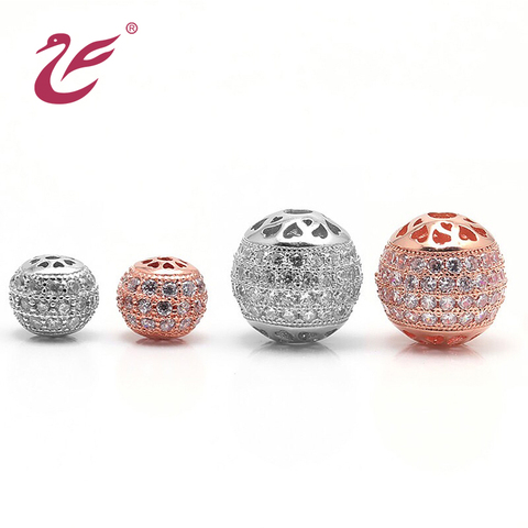 다른 크기 낮은 가격 도매 사용자 정의 로즈 골드 도금 라운드 공 수제 구슬 팔찌 지르콘 매력